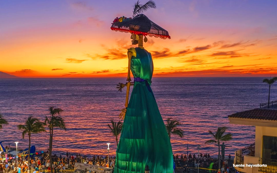 Durante estos días de cultura y tradiciones en Vallarta, el malecón se viste de gala con la Catrina más alta del mundo, una impresionante escultura de 27 metros que ha obtenido el Récord Guinness.